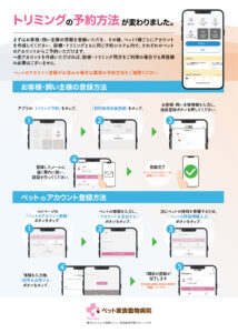 この度、トリミングのご予約につきまして、利便性向上のため予約方法を変更させていただくこととなりました。